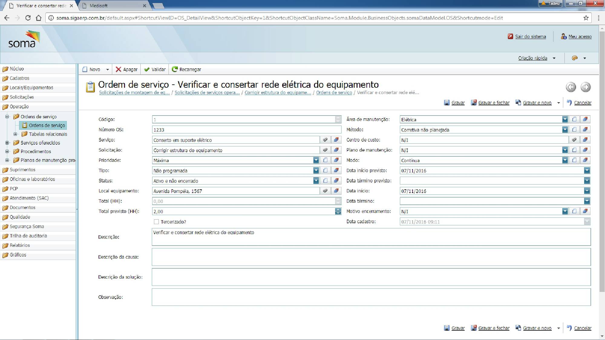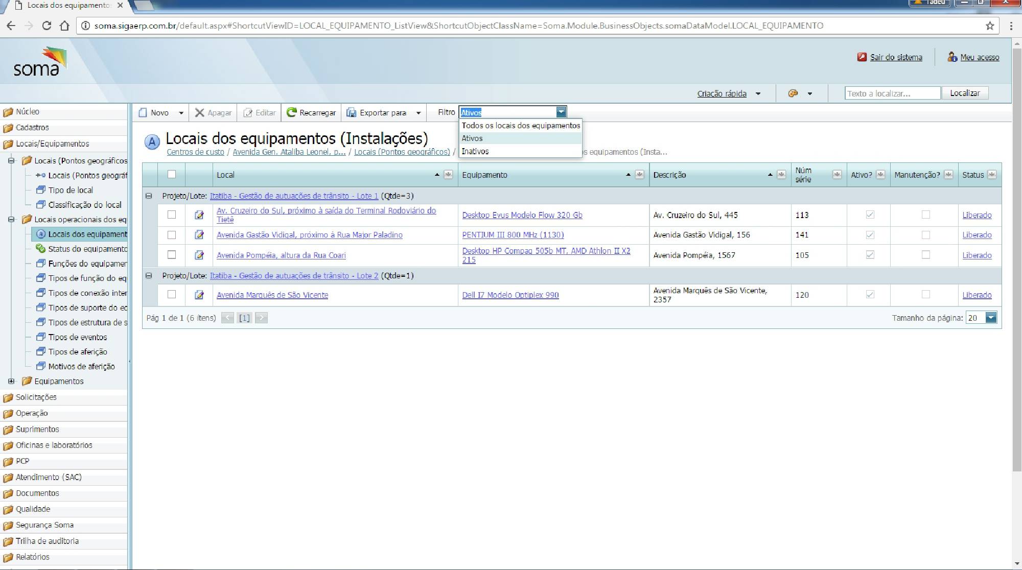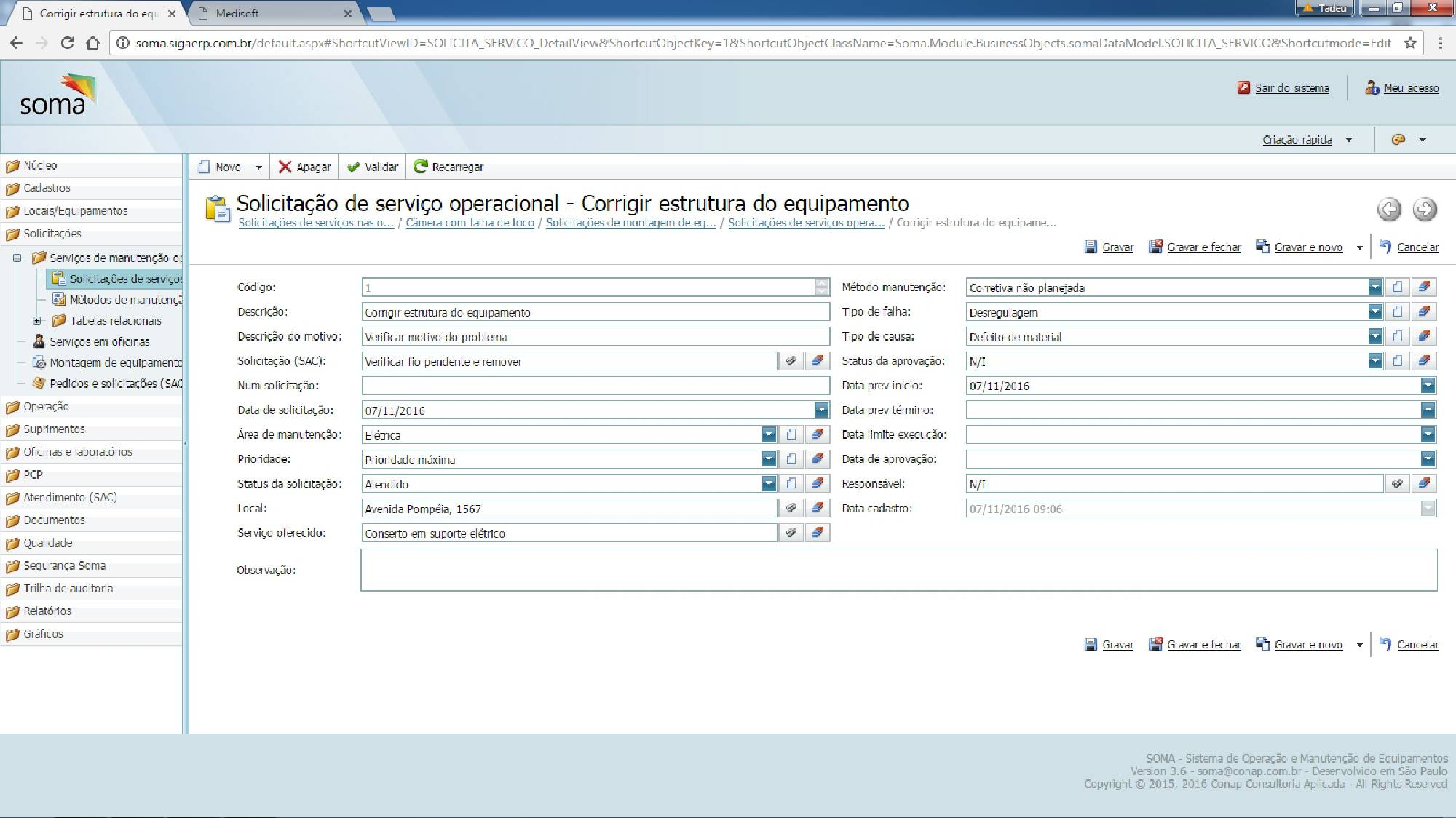 Os módulos funcionais integrados do Soma permitem emitir solicitações de serviço, gerar ordens de serviço, lançar horas trabalhadas por equipes internas ou tercerizadas, planejar e programar a manutenção preventiva e preditiva, gerenciar materiais e almoxarifados, equipamentos e locais de instalação, veículos, projetos e contratos, oficinas, laboratórios, aferições, histórico de eventos, atendimento de solicitações via “Help Desk”, documentos digitais vinculados aos processos e módulo gerencial de acesso e aprovação das atividades.